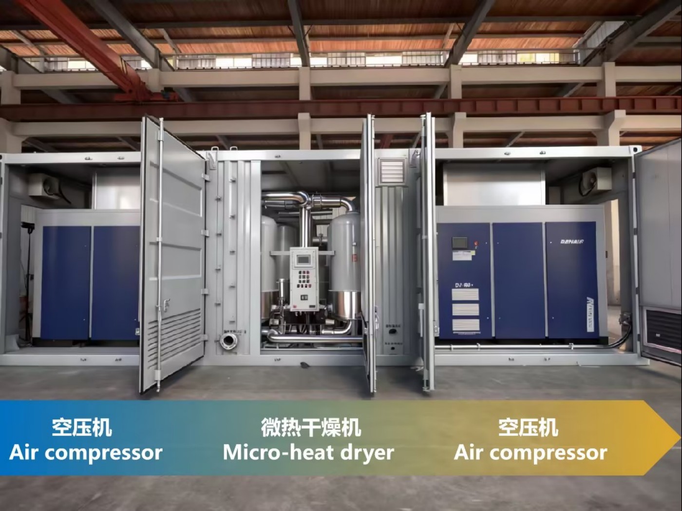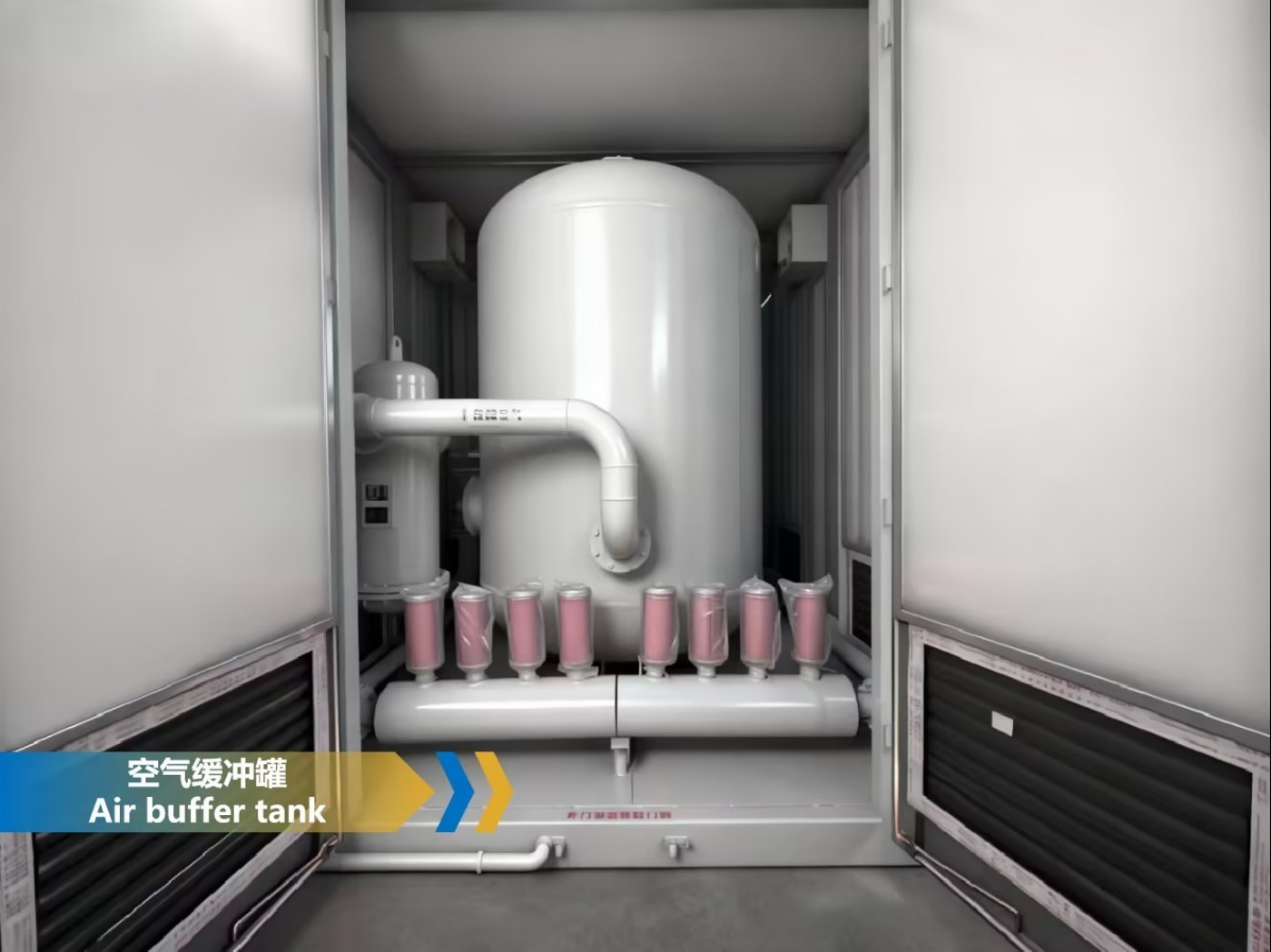 然后压缩空气在经过精密过滤器、微热干燥机、精密过滤器等进行脱油、脱水脱尘处理。进入空气缓冲罐进行压力缓冲。
